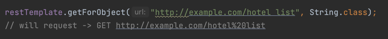 2. RestTemplate 메소드는 인자로 주어지는 문자열(java.lang.String)을 URL인코딩 합니다.
